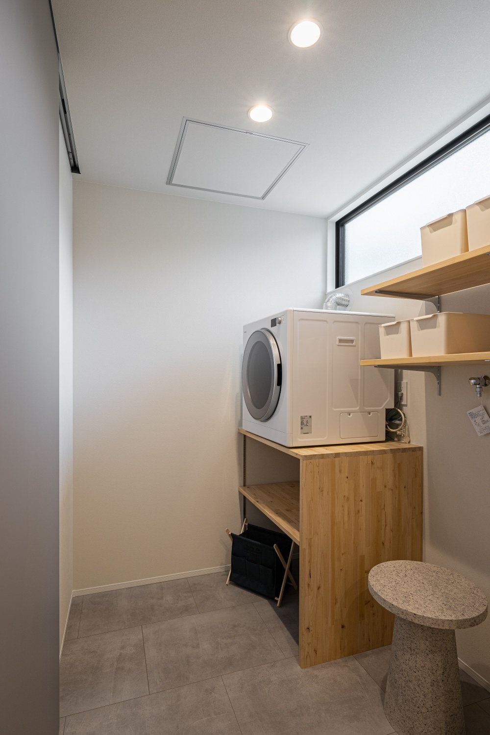 外観、内観ともにシンプルに落ち着いたトーンに統一。 吹き抜けリビングでゆとりを感じ、吹き抜け窓からは光が差し込み明るく開放感のある空間に。非日常を感じさせる暮らしを実現!!