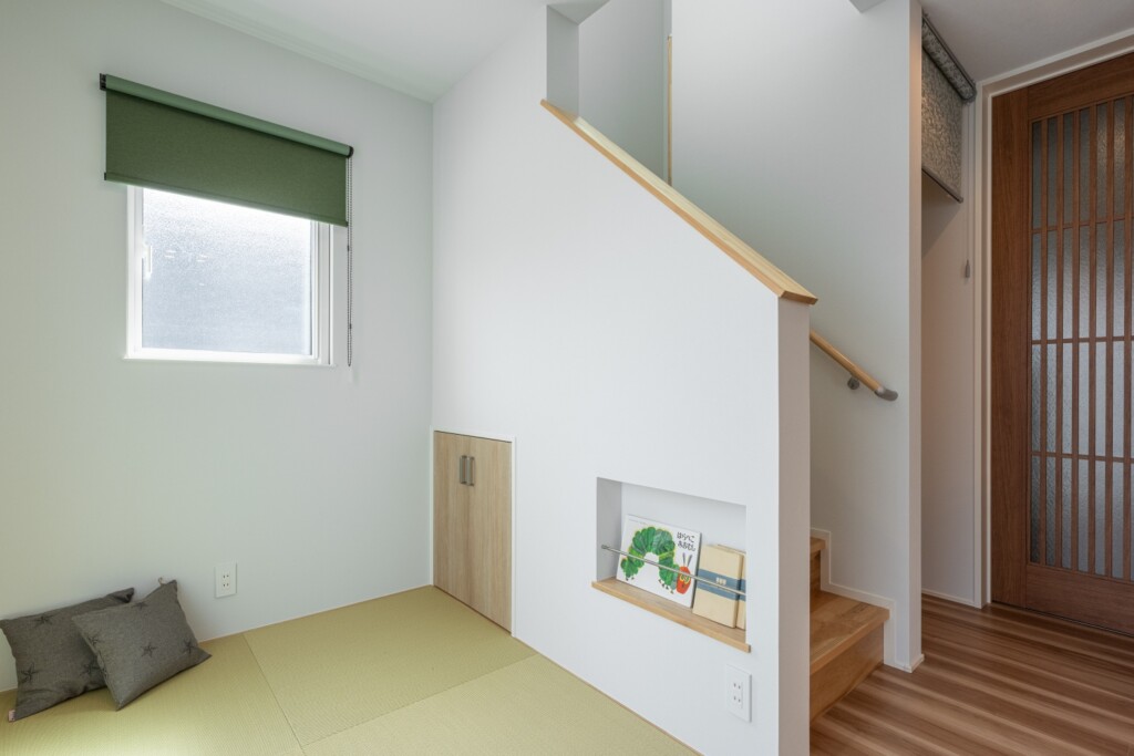 LDKの一部にある畳コーナーでリラックスできる空間。