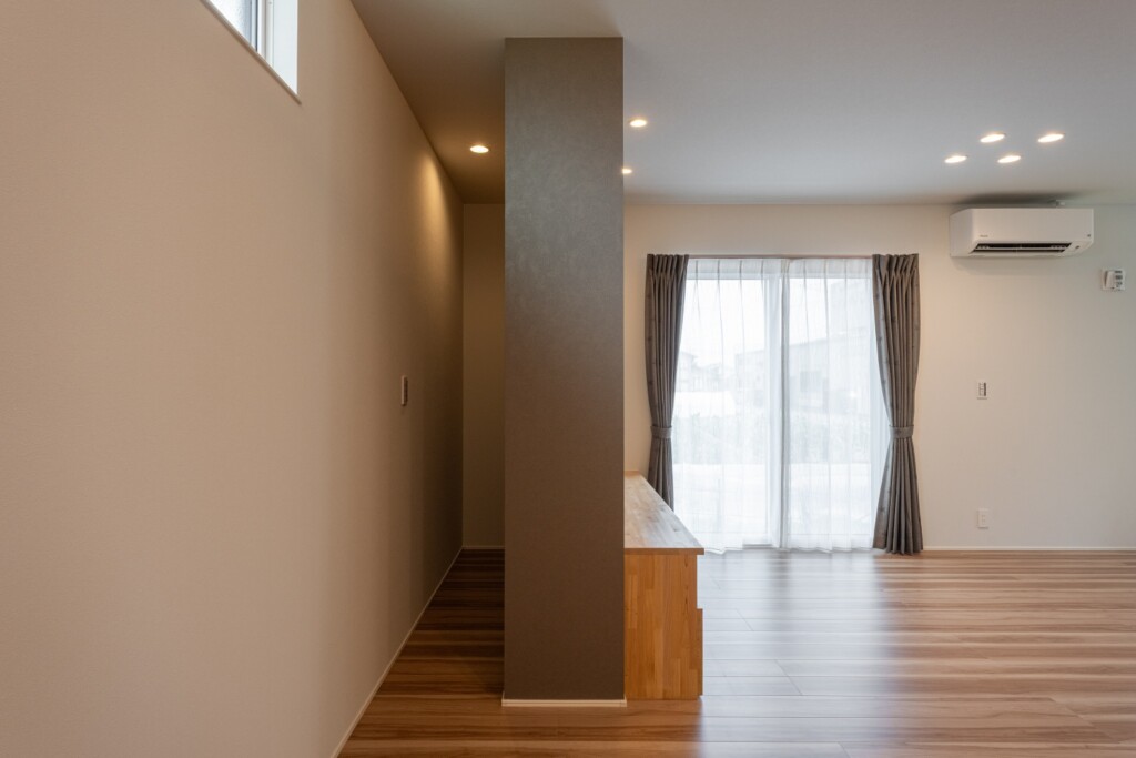 外観はかっこよく、中は温かみのある優しい雰囲気に。他ではあまり見ない、帰宅時のきれいな動線による家事のやりやすさがポイント! 収納や造作がたくさんあるこだわりのお家。