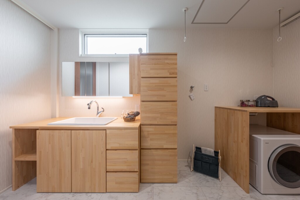 広々とした洗面家事室で家事もスムーズに。造作のものがたくさん!