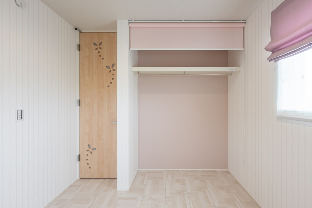 優しいピンクが基調のかわいらしい洋室。扉のデザインとも相性ばっちり!!