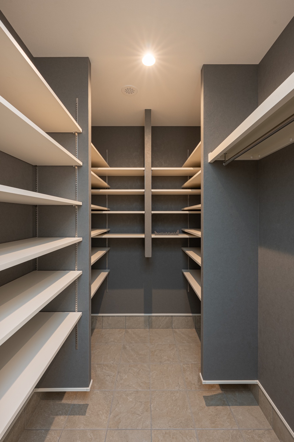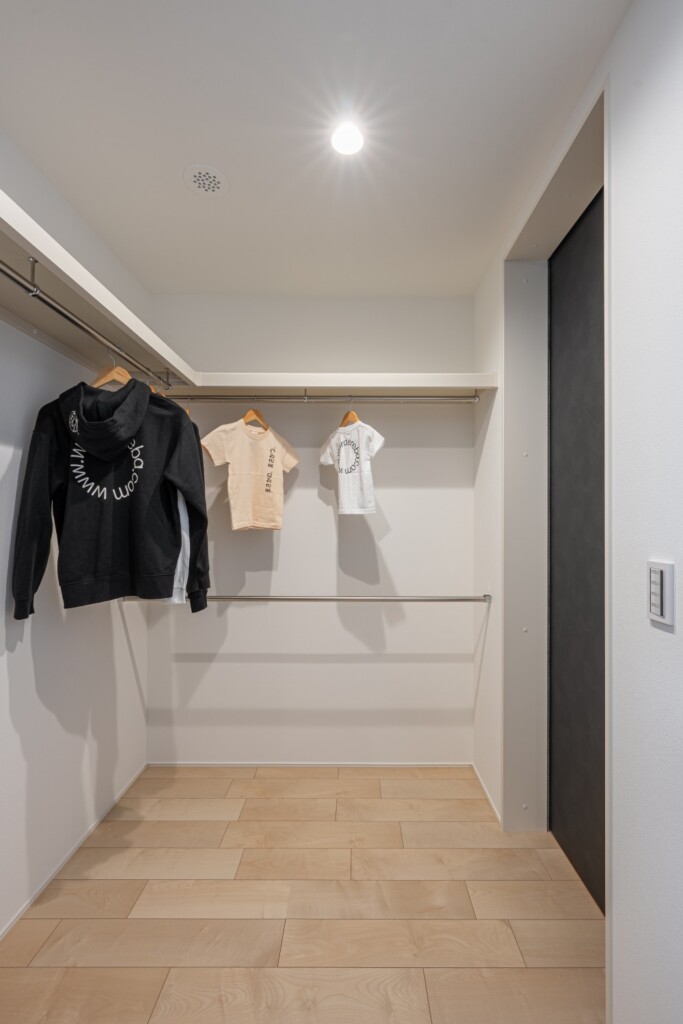 玄関横には大容量のシューズクローク。上着も掛けられるので、お出かけ前後がスムーズ。