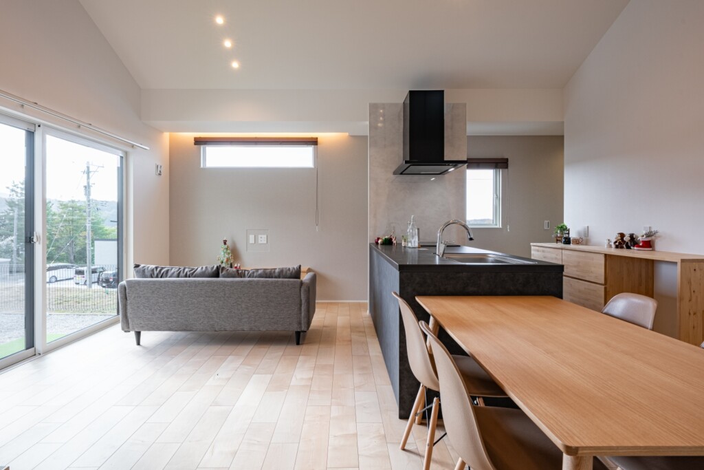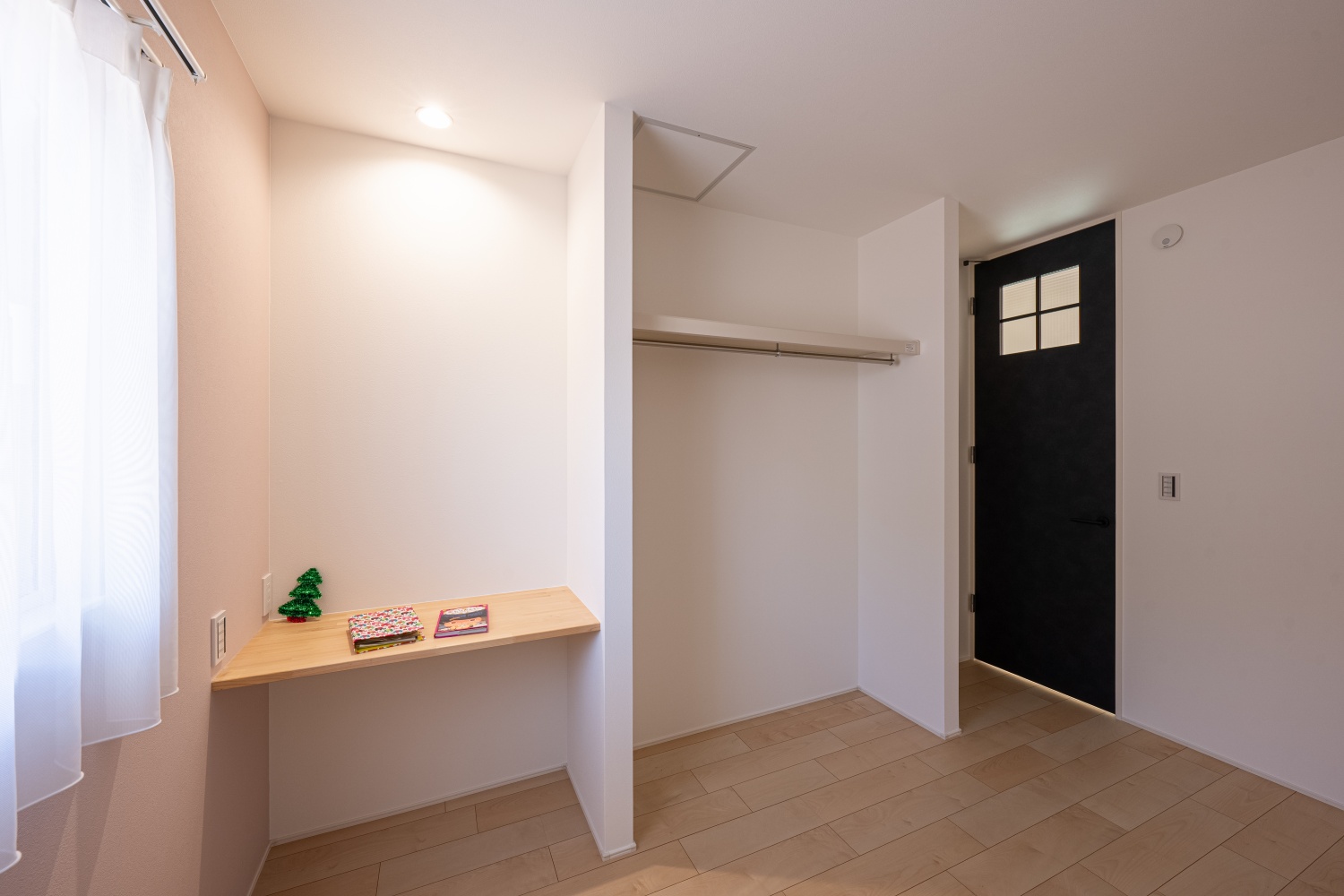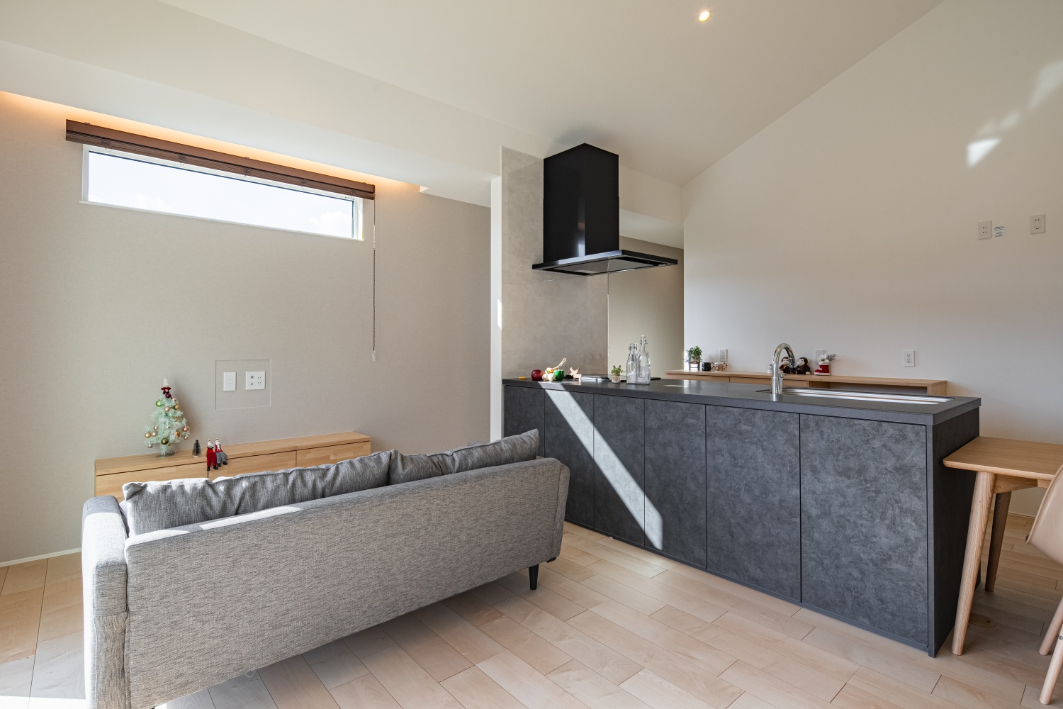 大きな吹き抜けで開放的でありながら、床暖房ひとつでも十分に暖かいところが最大のポイント!家族を近くに感じることができ、安心感のある空間に。外観のかわいらしさや動線の良さも見どころです。