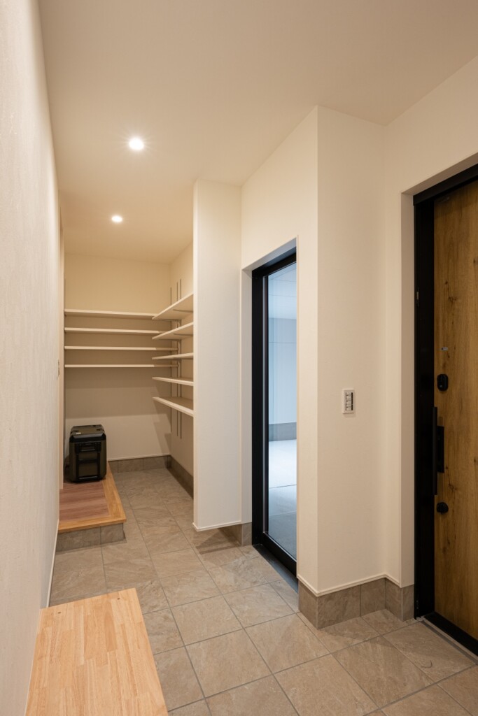玄関は広く、シューズクローク兼、パントリーとしても活用できます。