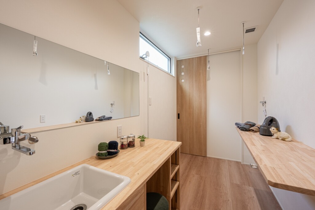 造作で作った洗面、家事室。