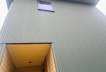 おしゃれかっこいいお家 デニム×木目のシンプルだけどデザイン性のある外観 高...